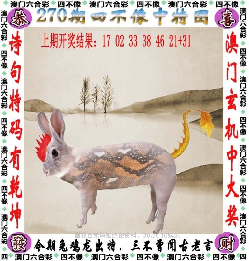 260期:七肖中特【狗龙牛猴鸡蛇羊】开兔03错 |