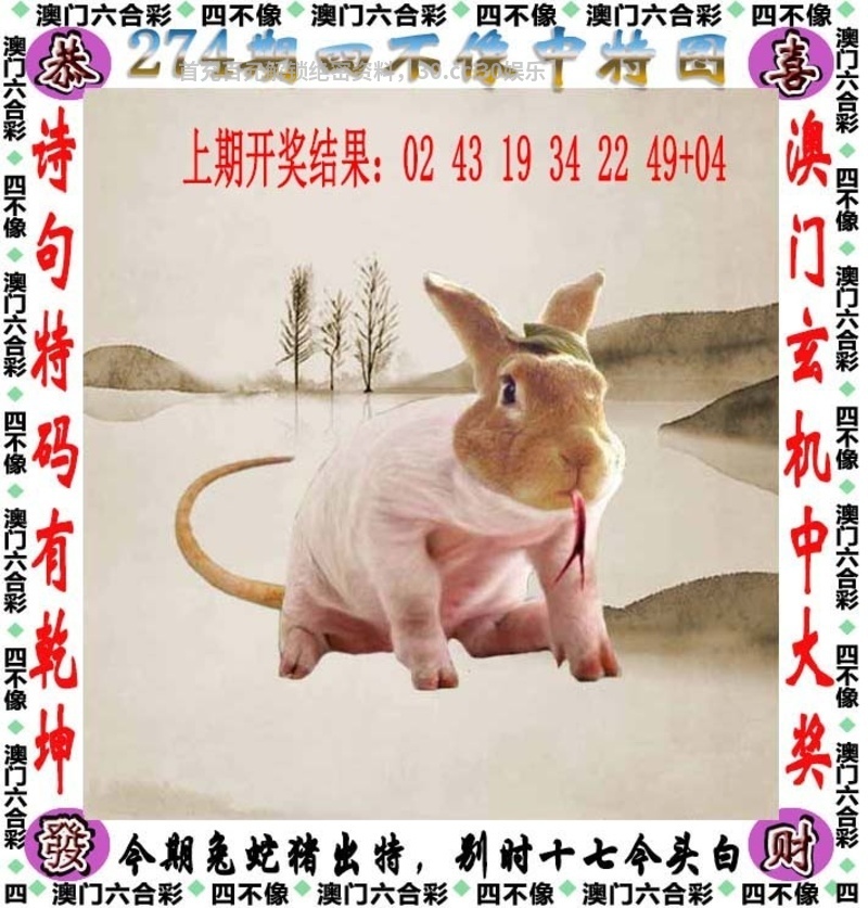 274期:平特连肖【牛猪兔鼠猴】开4中 |